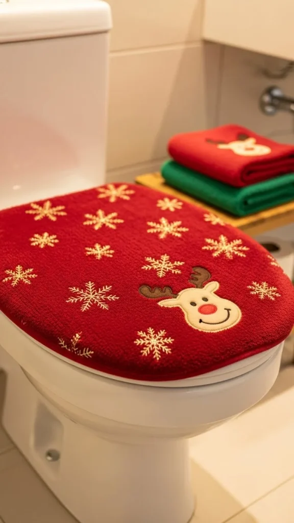 12. Festive Toilet Lid Cover (Elegant or Playful)