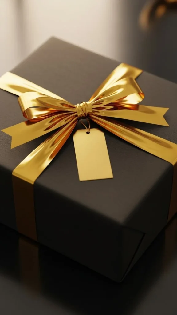 For a sophisticated look, matte black wrapping paper combined with gold accents creates an elegant, boutique-level presentation. The contrast between the deep black and the shiny gold ribbon adds a luxurious feel. You can keep it simple with a minimalist gold tag or add a bit of greenery, like a sprig of rosemary, for an earthy touch. This chic wrapping style works well for both men and women, making it perfect for any gift.