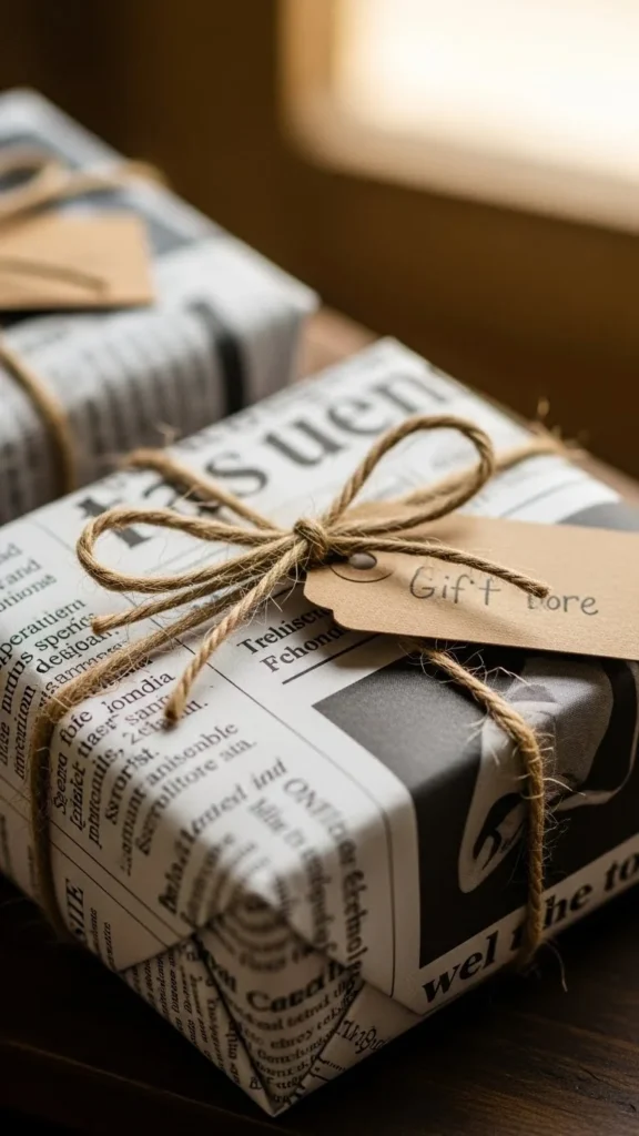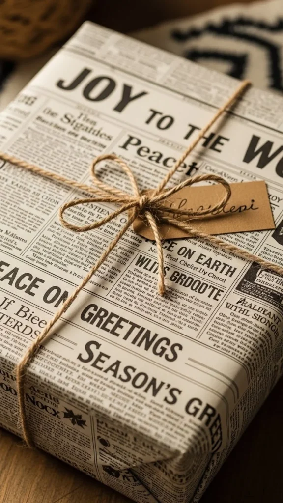 Recycled newspaper is an eco-friendly gift-wrapping option that adds a rustic charm to your presents. Use pages with vintage advertisements or seasonal illustrations for extra character. Tie the gift with natural jute twine for a simple, rustic finish. Add a small tag or sprig of pine to complete the look. This wrapping style is perfect for those looking to reduce waste while still creating a stylish and thoughtful presentation.