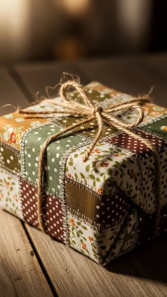 For a more rustic and homemade touch, use fabric scraps to wrap your Christmas gifts. Patch together different fabric pieces to create a colorful, textured wrapping that feels personal and cozy. Secure it with rustic twine or jute rope for an earthy, natural finish. Add a small tag or sprig of dried lavender for a charming, vintage-inspired look. This DIY wrapping idea is perfect for those who appreciate a handmade, rustic holiday aesthetic.