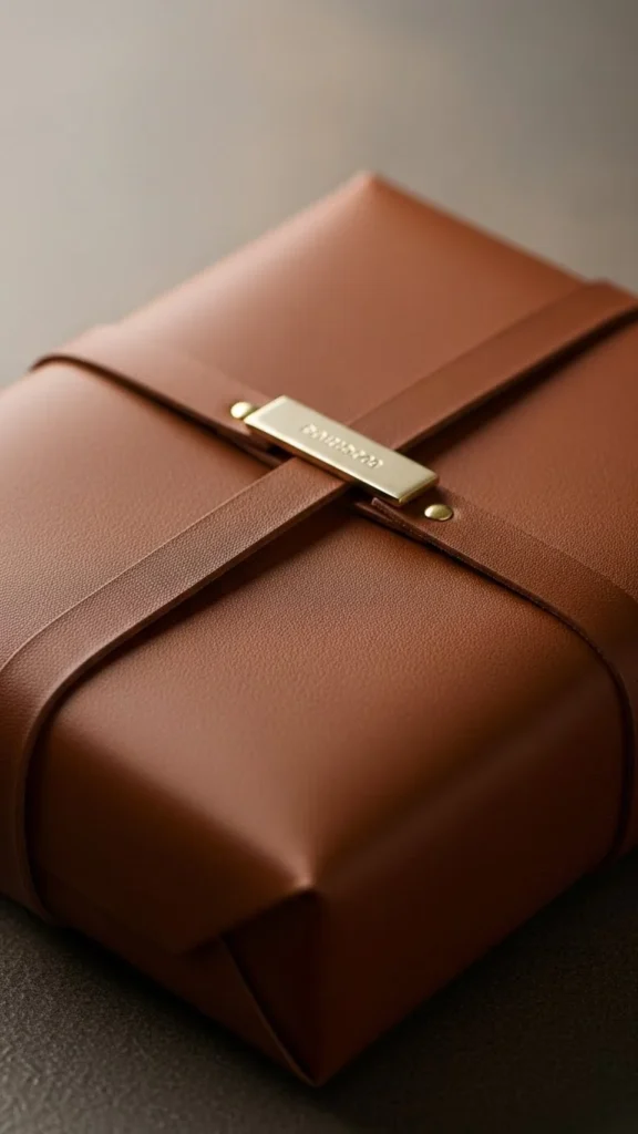 For a truly luxurious wrapping option, consider wrapping your gifts in leather. The rich texture of leather creates a premium, high-end feel, making it perfect for upscale holiday gifts. Use a simple leather strap or cord to secure the package, and add a small metallic tag with the recipient’s name for a personalized touch. This sophisticated wrapping choice is ideal for special gifts like watches, tech gadgets, or jewelry, providing an elegant presentation.