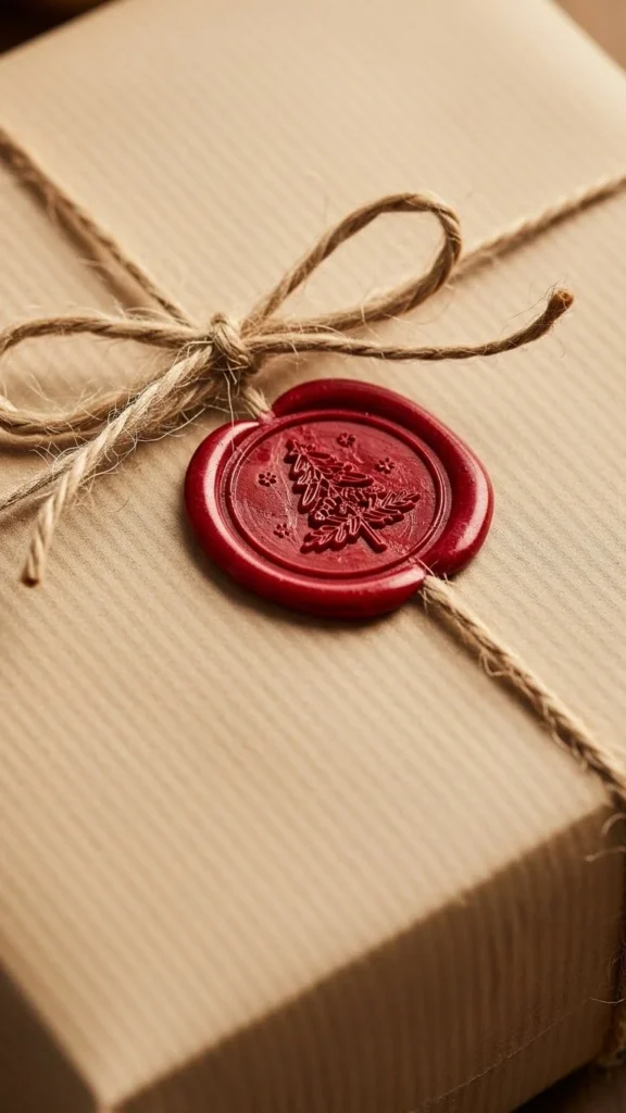 Simple brown paper paired with wax seals brings a timeless, vintage charm to your holiday gift wrapping. The rustic look of the brown paper contrasts beautifully with the glossy finish of a wax seal, which can be stamped with a personalized design or festive symbol like a snowflake or reindeer. Wax seals are a perfect way to add a special, high-end touch, and they create a vintage, elegant aesthetic for gifts of any size.