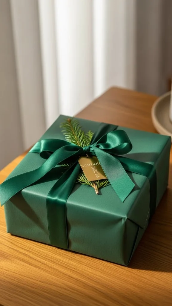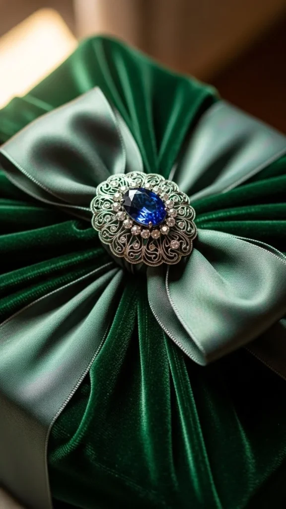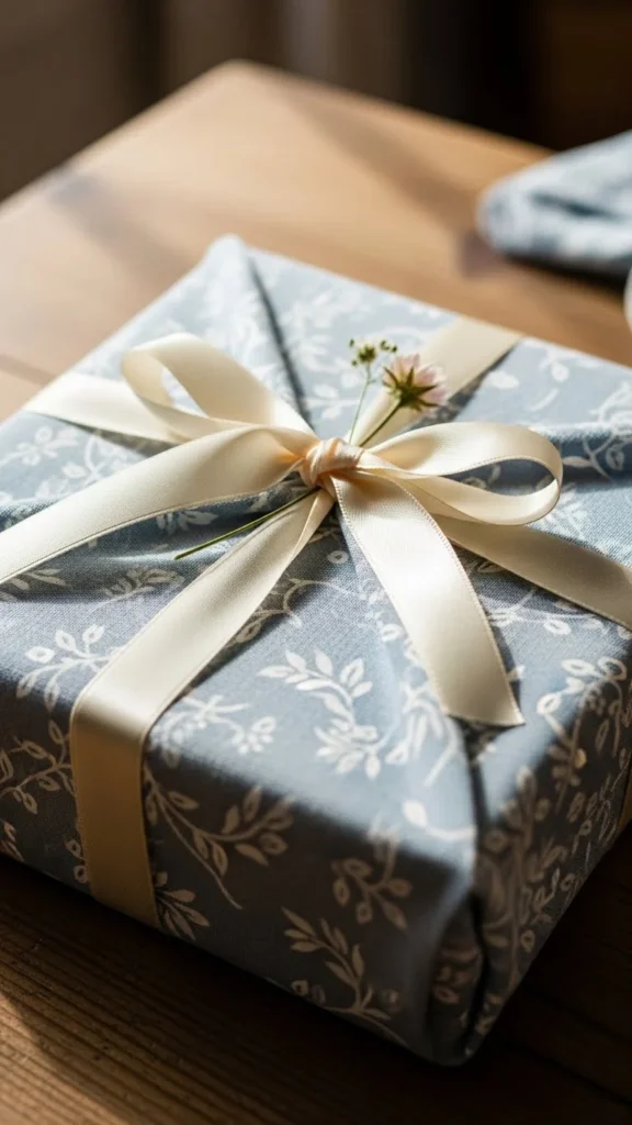 Fabric wrapping offers a refined, luxurious way to present your Christmas gifts. Opt for rich materials like silk, satin, or velvet to wrap the gift, and secure it with a matching ribbon. Adding a vintage brooch as an embellishment adds glamour and sophistication. This wrapping style brings a boutique-level touch to your gift presentation, and the brooch can be saved and worn by the recipient, making it both beautiful and functional.