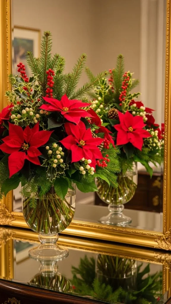 18. Mirror Layered Behind Holiday Florals