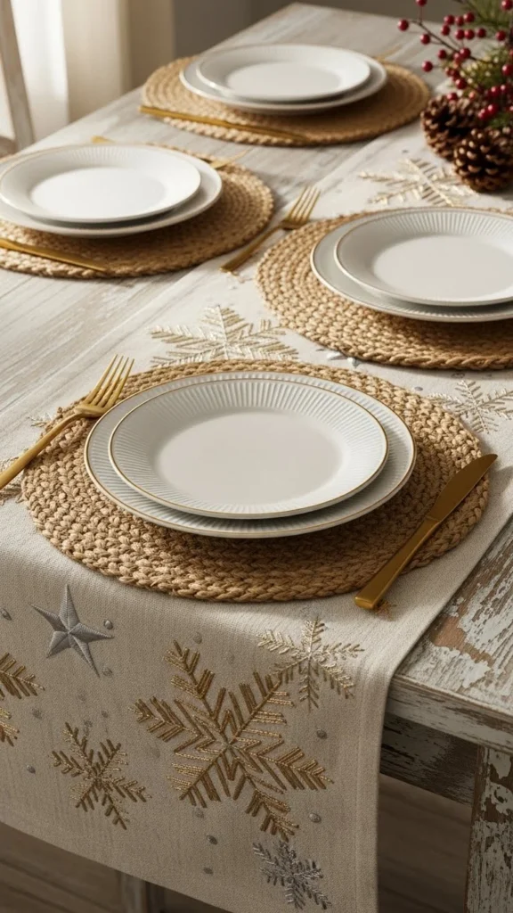 Layering creates depth. You can pair placemats with a runner or use textured chargers beneath your dinner plates.