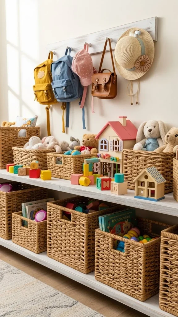 - Open baskets for toys
