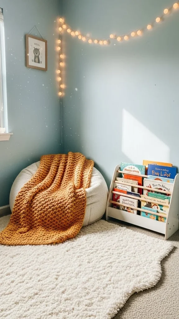 - A reading nook with floor cushions