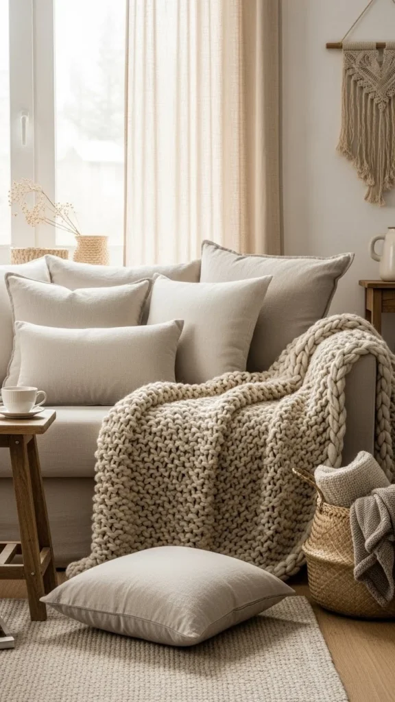 Natural materials add depth, character, and that earthy calmness that instantly makes a room feel cosier. Mix and match textures for a layered, designer-level look.