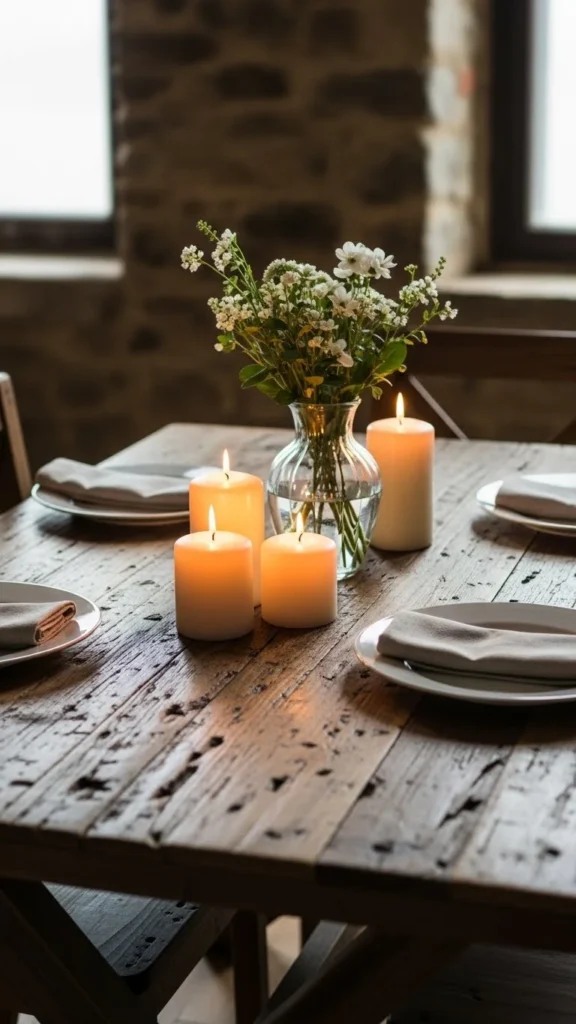- Keep the table setting simple with ceramic plates and linen napkins to highlight the natural texture of the wood.