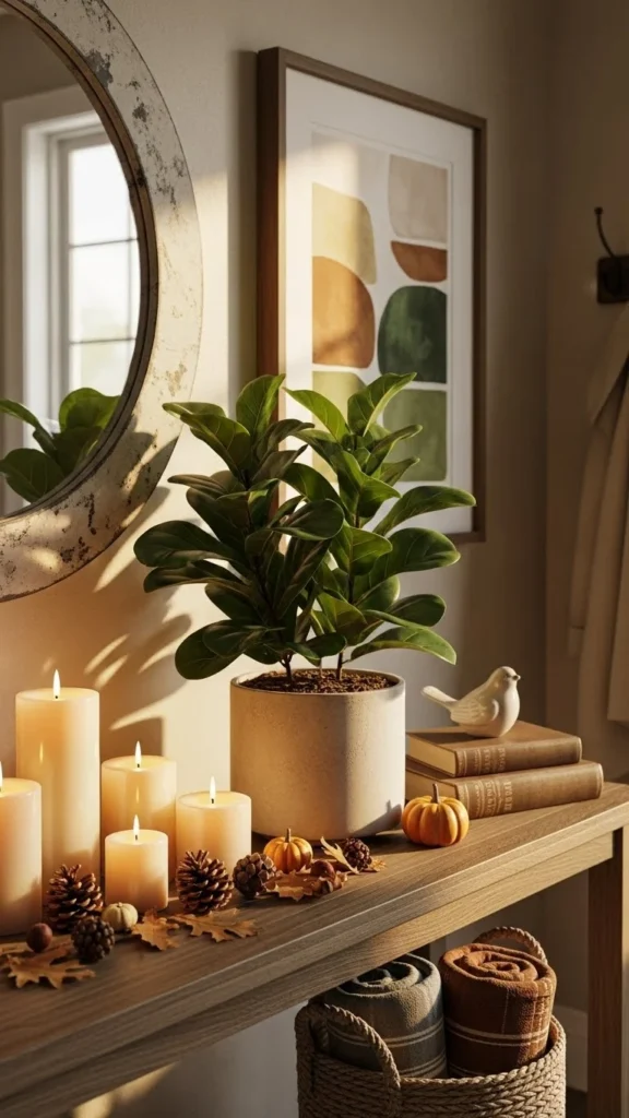 The entryway sets the mood for your home. Place greenery in a vase, lay a thin garland across the table, or style a tray with small stems. Use soft lighting to highlight the greens. This makes the space feel welcoming and warm for guests.