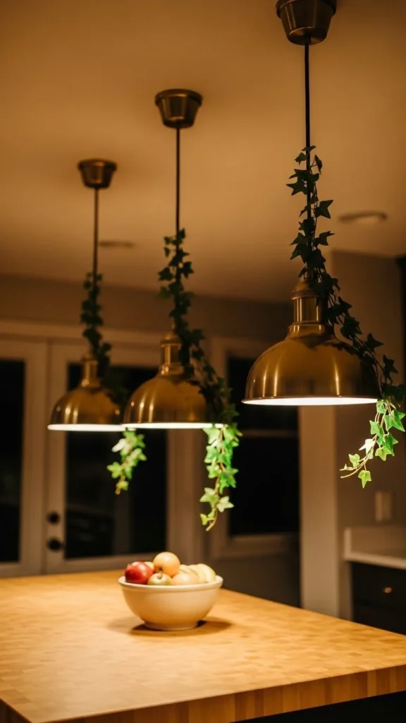 Pendant lights are a great place for subtle greenery. Wrap a small sprig near the top of the fixture or use a thin garland around the cord. Keep it minimal so it doesn’t interfere with the light. This adds charm, especially in kitchens or dining rooms.