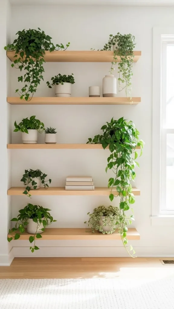 4. Add Greenery to Open Shelves