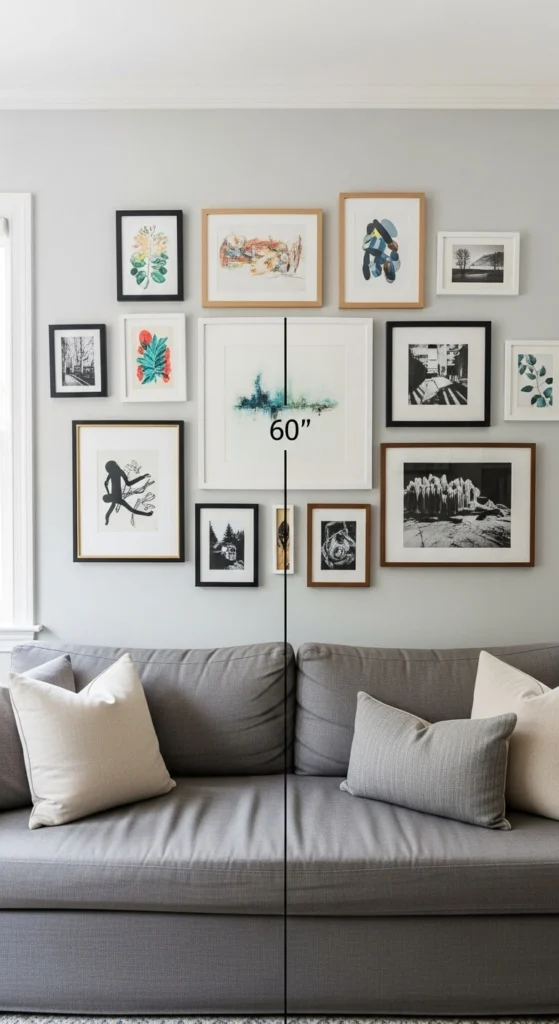 A perfectly styled gallery wall can still look off if it’s hung too high or low.