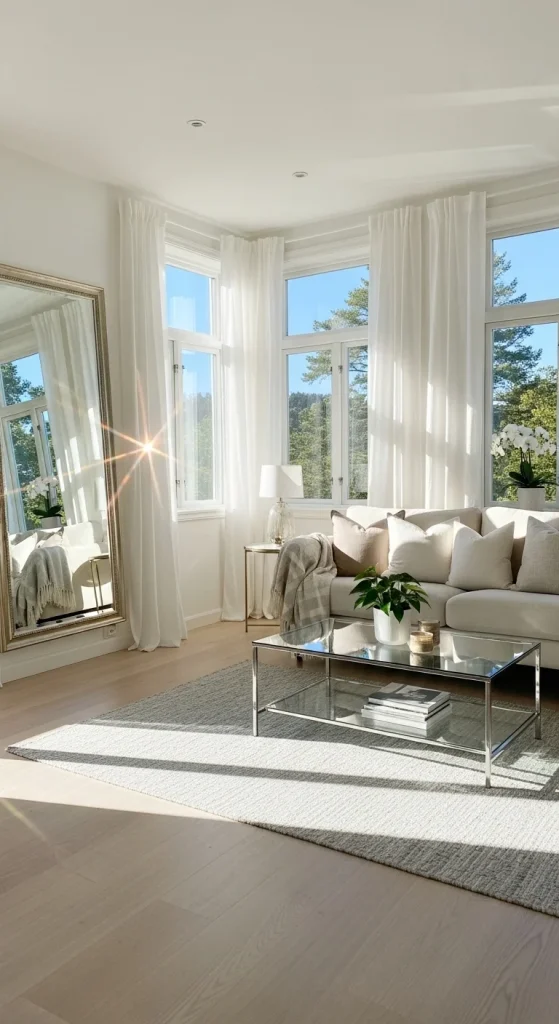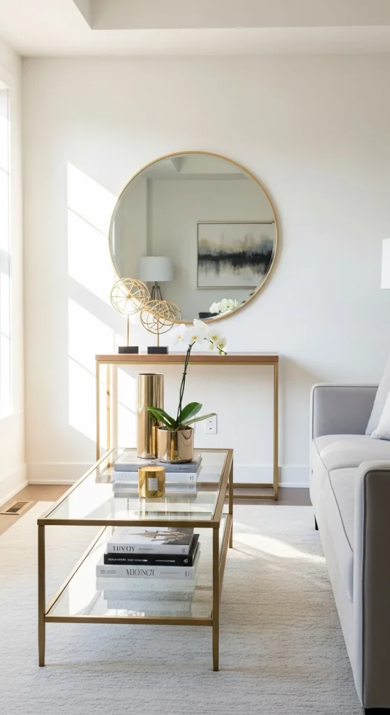 - Use mirrored coffee tables or metallic decor to add depth and sparkle.