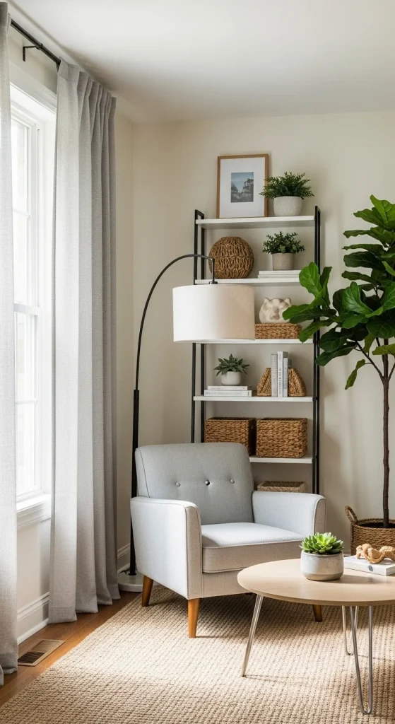 Bonus tip: A statement floor lamp or vertical plant (like a fiddle-leaf fig) adds instant height and style.
