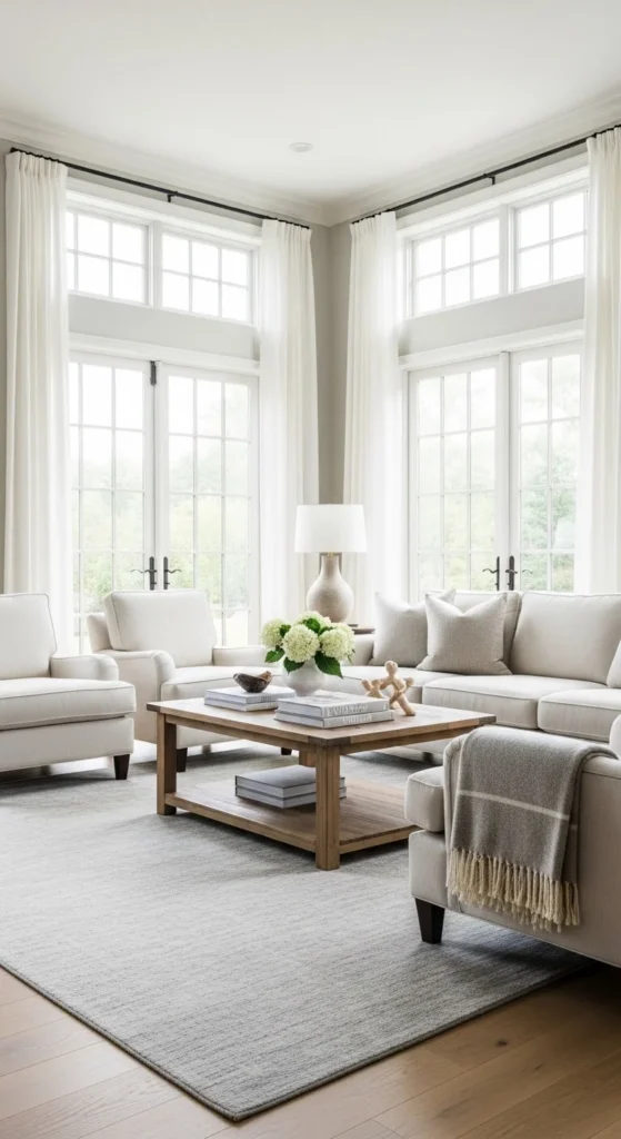 Neutral tones allow the architecture and furniture to stand out without overwhelming the room.