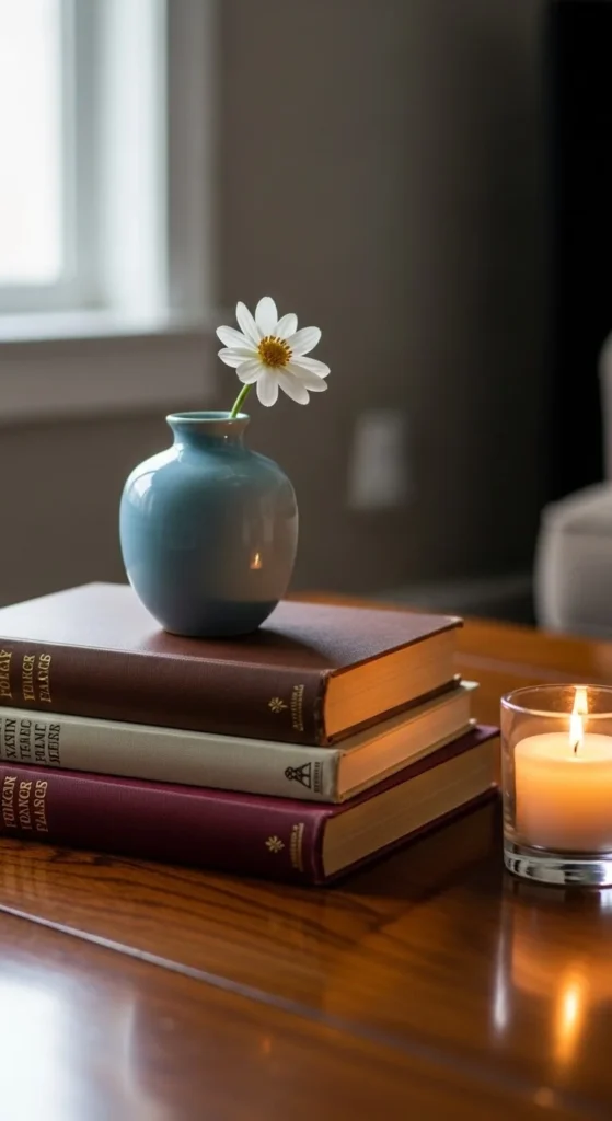 Instead of filling every surface with decorations, focus on a few meaningful pieces.
