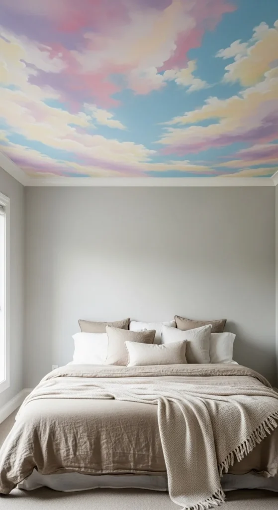 • Soft pastel ceiling for a dreamy feel
