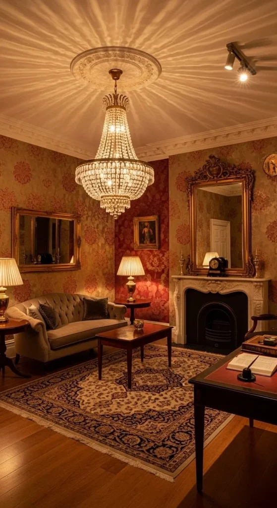 Warm lighting creates a soft glow that enhances the room’s atmosphere.