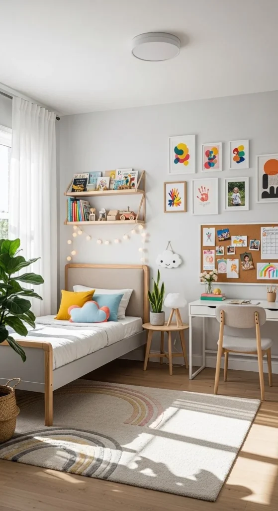 Kids love seeing their work on display. It makes the room feel like theirs.