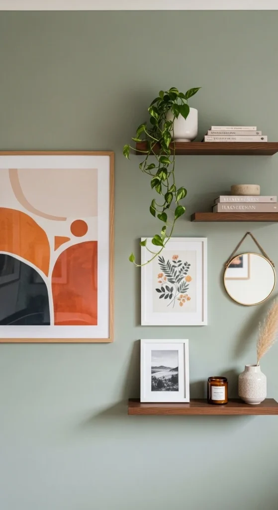 Shelves add dimension and make walls feel alive.
