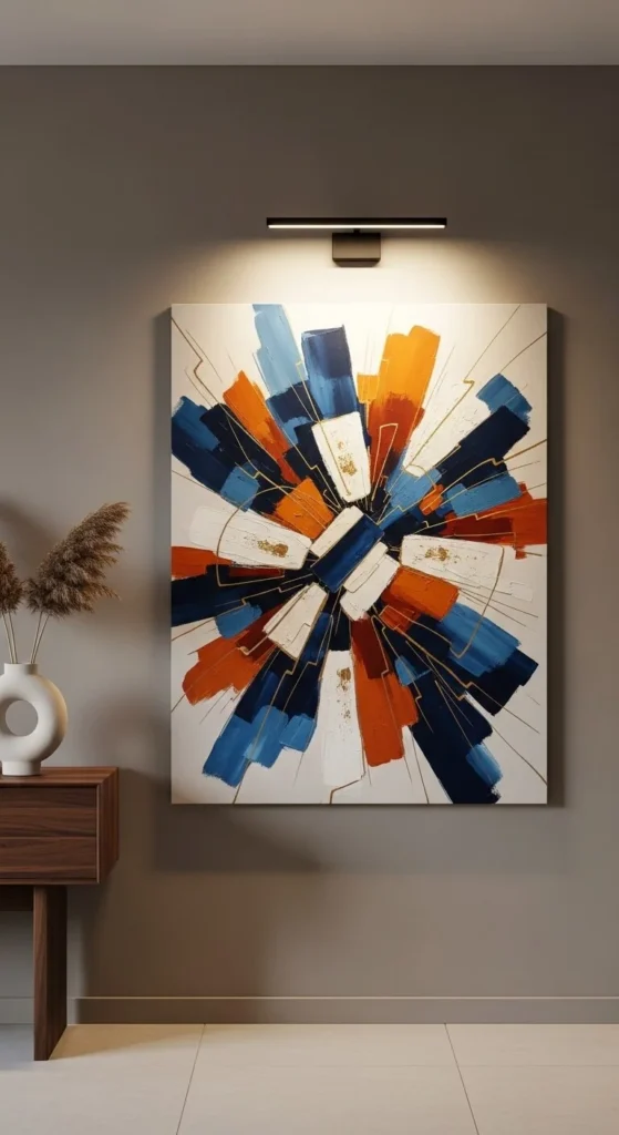 Modern design thrives on simplicity. Instead of filling an entire wall with multiple small items, begin with one strong focal piece.