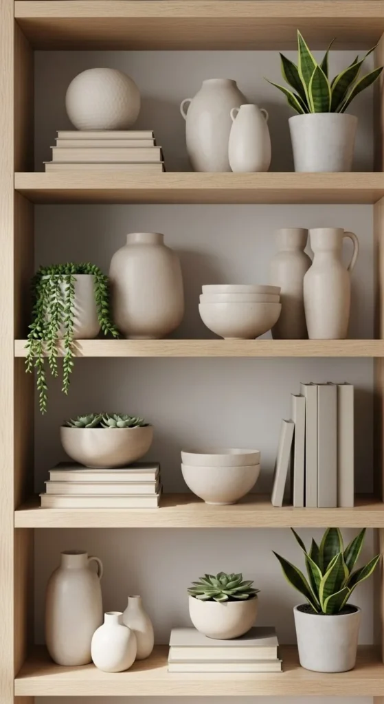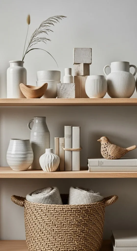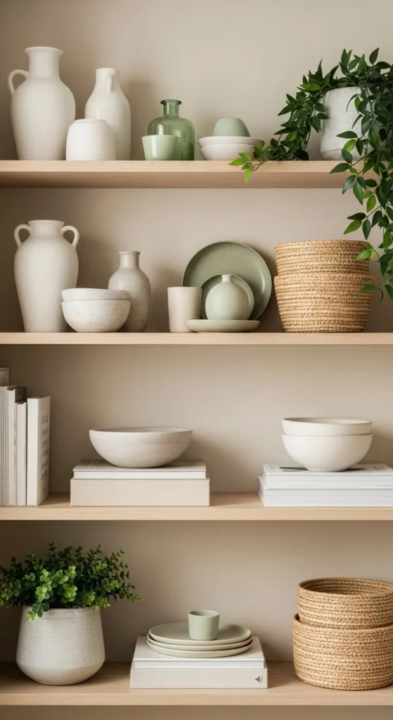 Here’s a clear, practical way to decorate open shelves so they stay beautiful—and clutter-free.