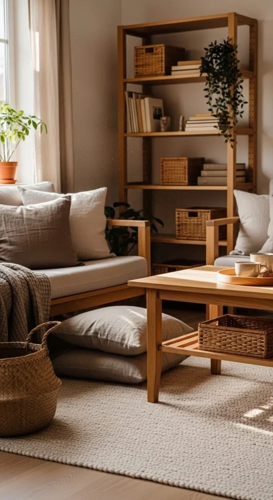 Even light wood tones can make a room feel grounded and comfortable.