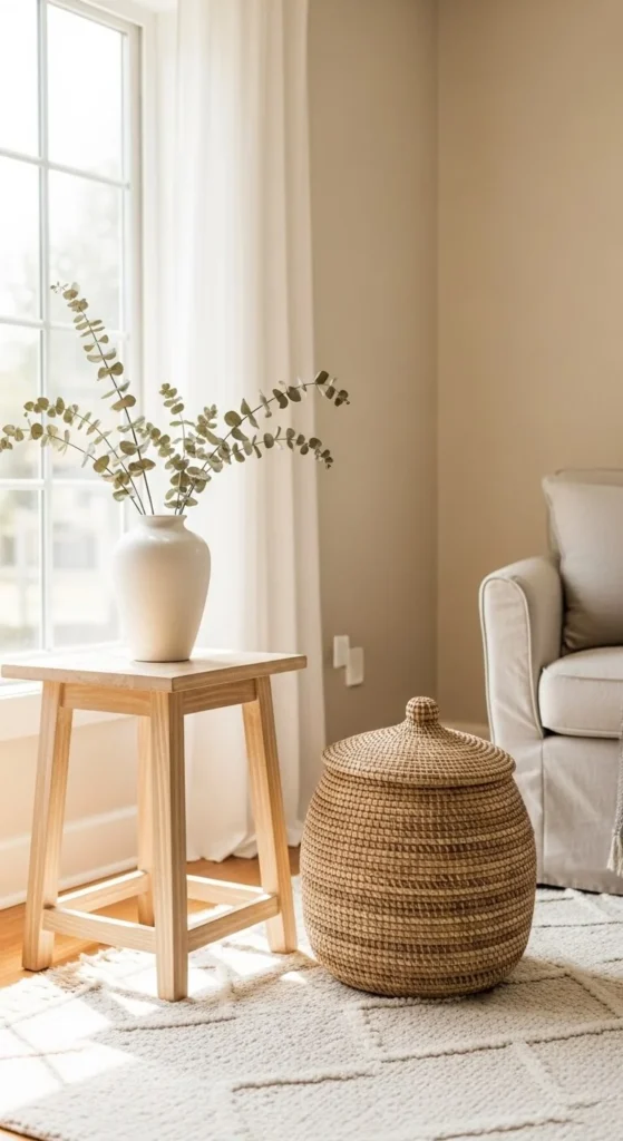 Soft light brings out the details in fabrics, wood grain, and woven surfaces.