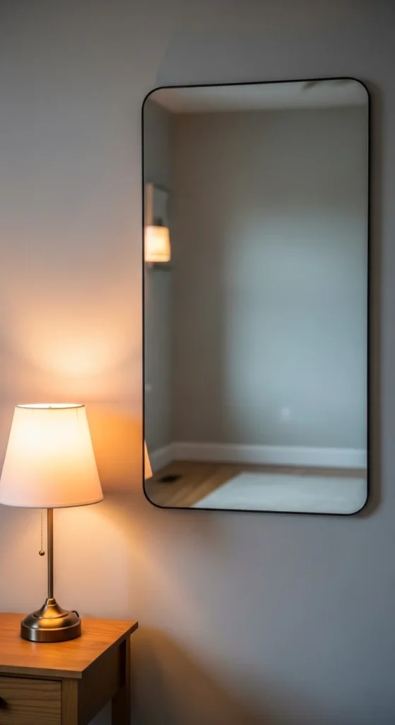 When a mirror reflects light, it doubles brightness and visually expands the room.