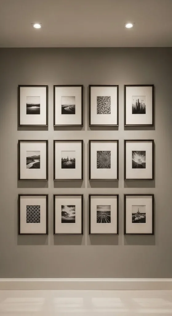 - Evenly spaced gallery wall grids