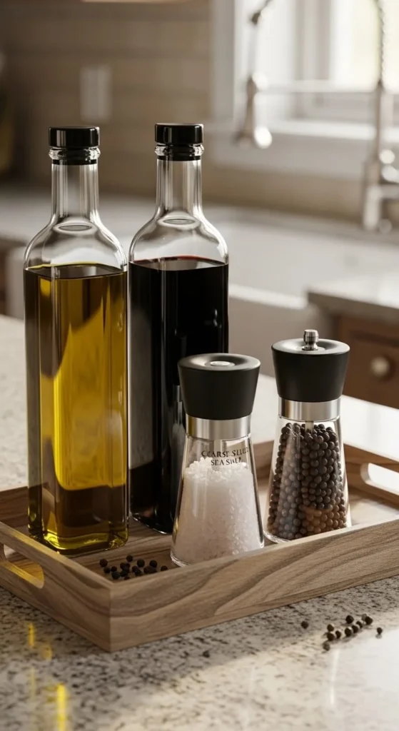 Place the tray on your countertop near the stove or coffee machine. Suddenly, everything looks intentional instead of scattered.