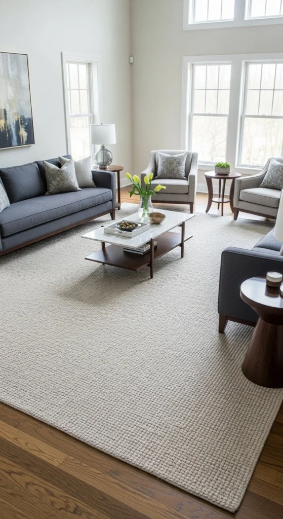 A generous rug makes the whole space feel more considered—even if the furniture is simple.