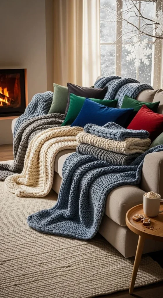 • Chunky knit blankets