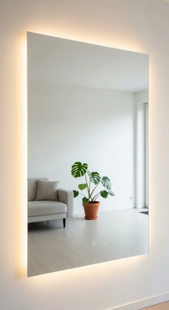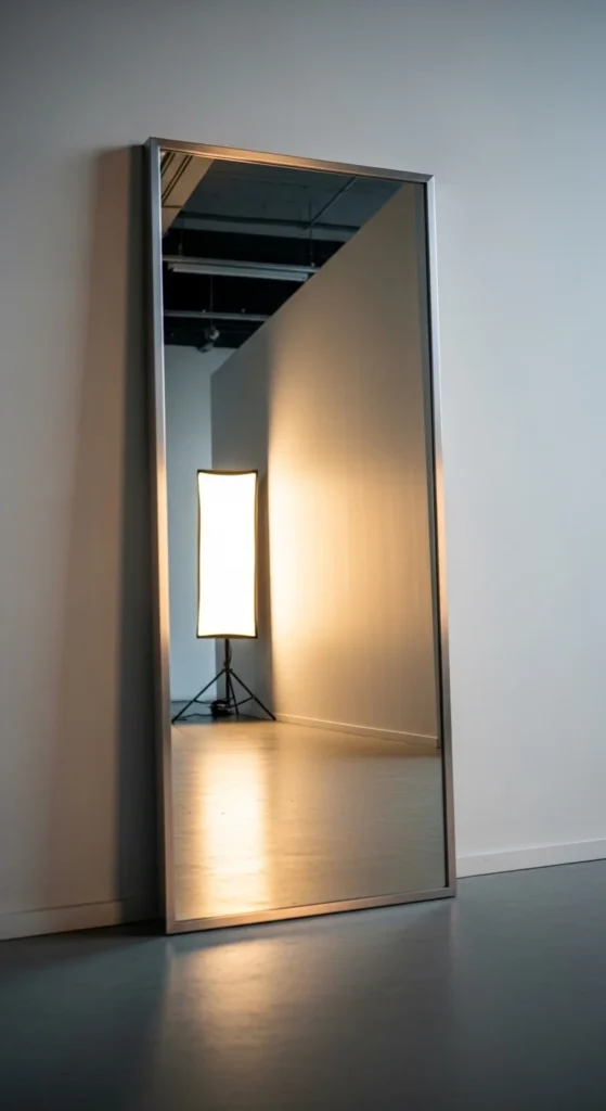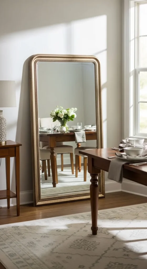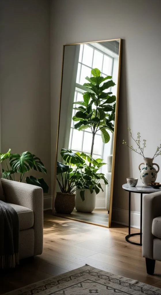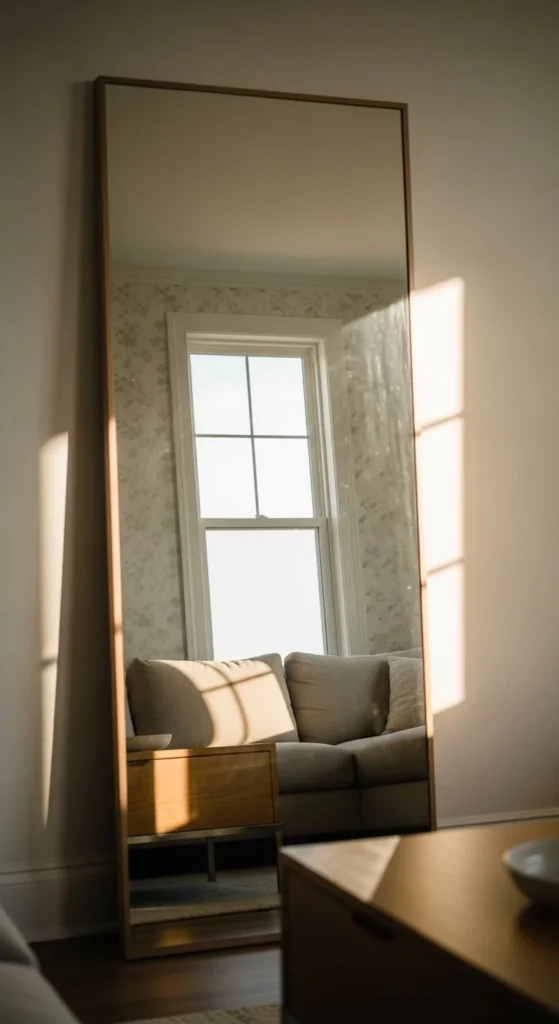 An oversized floor mirror instantly creates the illusion of extra square footage. Lean it against a wall instead of mounting it. This keeps things casual and renter-friendly.