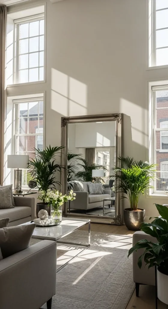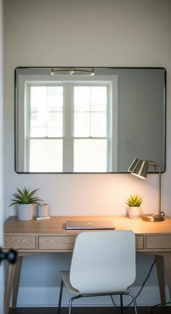 This works best on a wall that faces a window or open space. The reflection adds depth instantly.