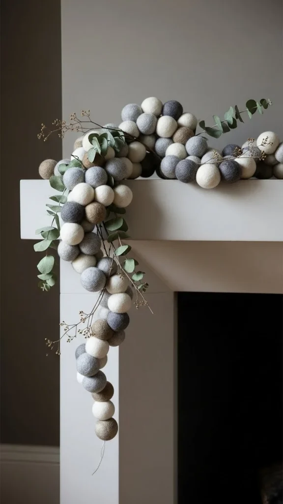 You can make your own using wool roving and warm water or buy pre-made balls online. This garland works well on mantels, railings, or around windows. Keep the colours muted for a modern finish.