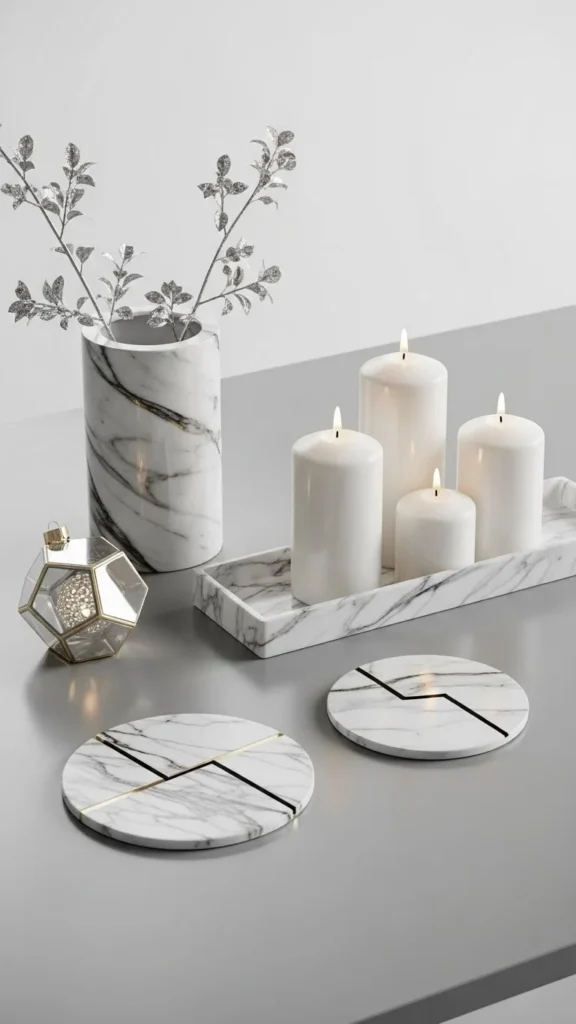 Marble accents give your décor a polished edge. Use marble coasters, trays, candle holders, or small ornaments.