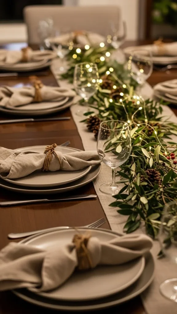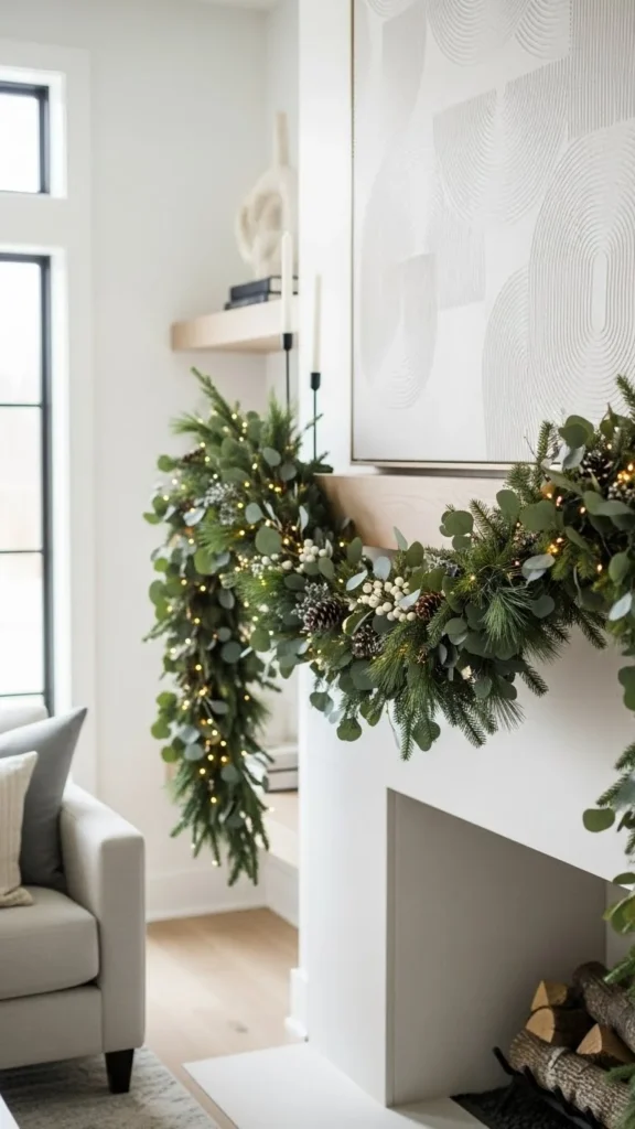 A neutral garland gives your home a modern holiday foundation. Choose greenery in muted tones—eucalyptus, olive, or soft pine.