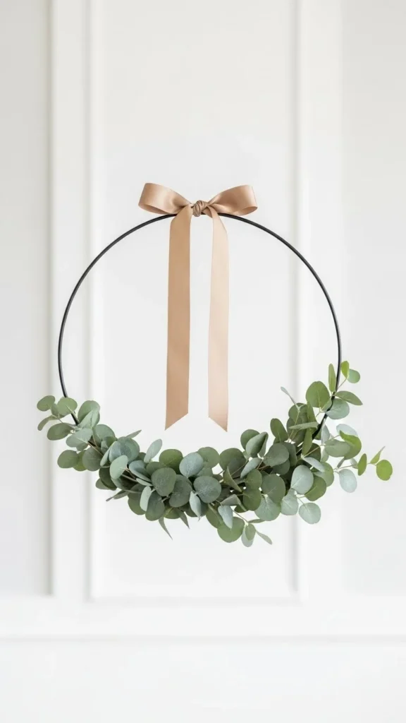 Tie a long trailing ribbon at the bottom for movement. Keep the colour palette soft. Making your own wreath at home is affordable and lets you match it to your décor easily.