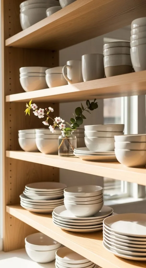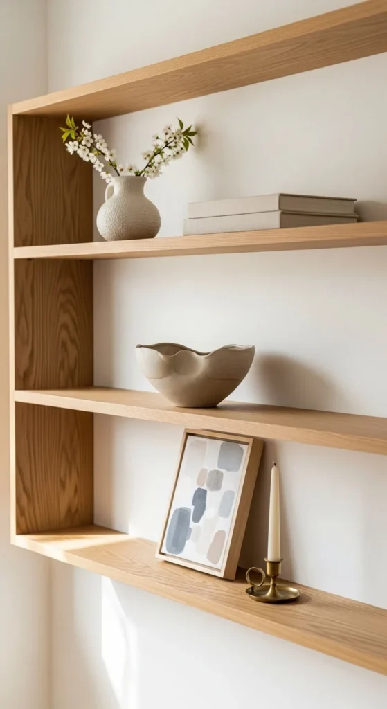 Dust shelves weekly. Clean shelves look styled without extra effort.