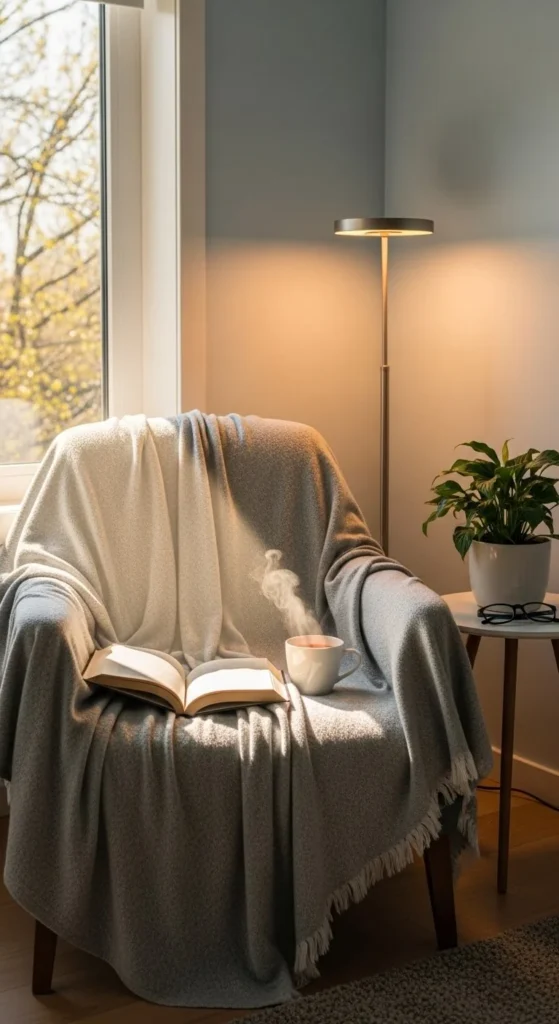 Use warm bulbs, not harsh white. This keeps the room welcoming even during daylight hours.