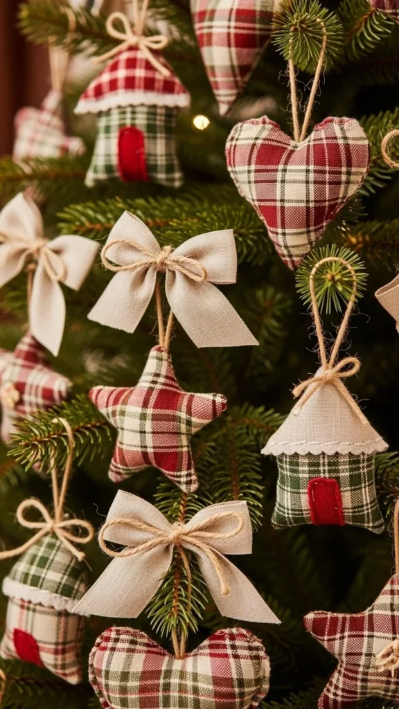 Use leftover fabric to create small ornament shapes. Stitch stars, hearts, or simple circles. Add buttons or twine loops. These ornaments create a soft, homely feel. Mix them with wood or pinecone pieces. This idea keeps costs low and adds personality to your tree.