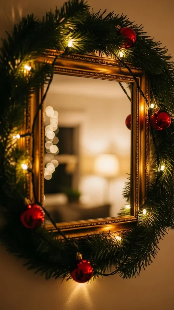 You can decorate around the mirror with greenery or a small wreath. If you’re on a budget, use battery-powered lights so you can place them anywhere. This trick brings more holiday sparkle without adding extra décor. Mirrors also help spread light across the room, making the space feel roomy and warm.