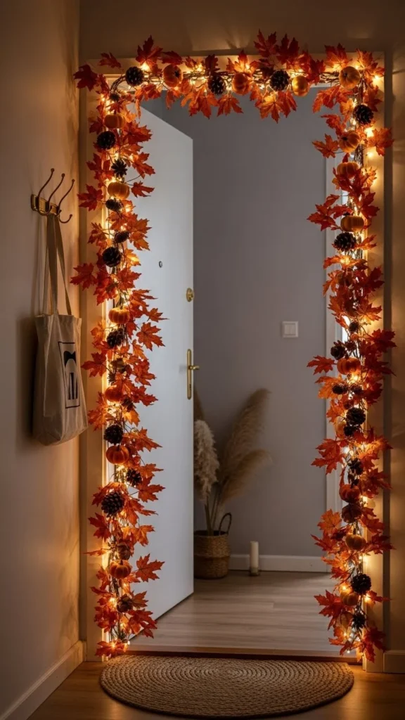 Garlands don’t have to sit on tables—they look great around doorways, mirrors, or along walls. Vertical placement saves space and draws the eye upward.
