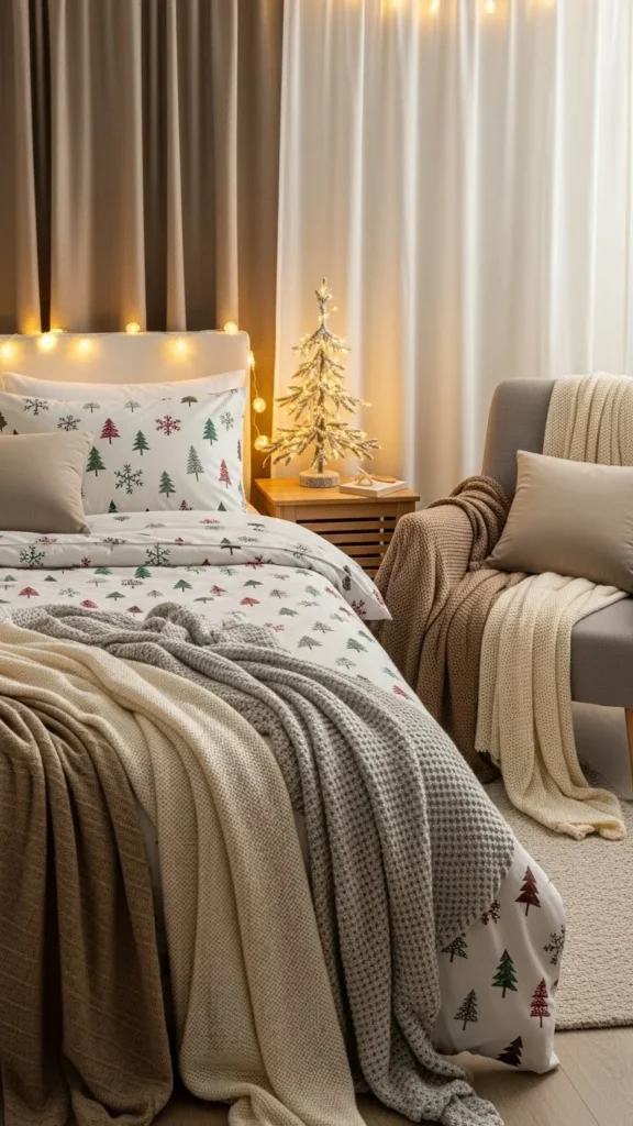 Your bedroom can feel festive with small changes. Use holiday bedding, a seasonal throw, or a few decorative pillows.