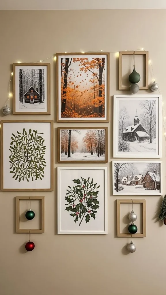 Swap a few frames with seasonal artwork. Use prints of winter scenes, holiday quotes, or simple illustrations.