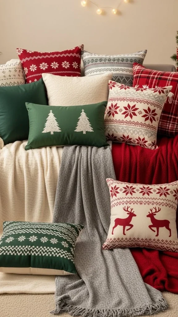 Fold the throw neatly on your sofa, bed, or accent chair. This creates instant holiday charm without crowding your space. For a cheaper option, look for lightweight throws that store easily after the holidays. Pair the throw with matching pillows to tie the room together. This simple change adds warmth and colour without making the room feel busy.