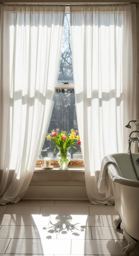 If your bathroom has a window, use sheer coverings. They let light in while keeping privacy.