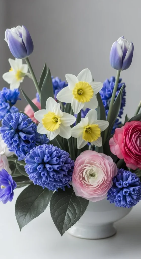 Use flowers in one color family. Different shapes keep it interesting. This feels clean and calm. It’s easier to style than mixed colors.
